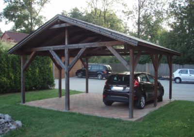 Univerzální použití garážového stání pro dvě auta s pultovou střechou dovoluje umístit konstrukci samostatně do prostoru, nebo ji připojit k určité. Realizujeme v kraji Olomouckém, Zlínském a Moravskoslezském. Bližší informace rád podám. Trámová garážová stání vyrábíme v provedeních pro auto nebo pro auta , případně dle požadavku. Uvedená provedení jsou kompletní hoblovaná.
